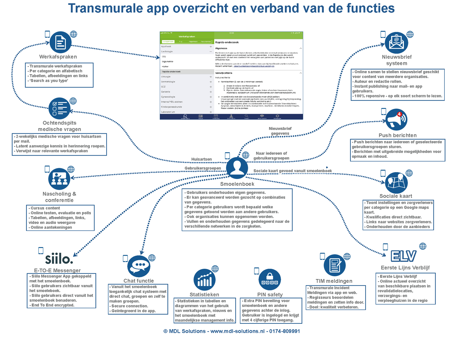 De basis van alle toepassingen zijn de transmurale 'werkafspraken' apps. Deze basis apps bieden de toepassingen werkafspraken, smoelenboek, nieuws en contact. Bij de basis apps kan ook een een website beschikbaar gemaakt worden waarin de meeste 'app' functies ook gebruikt kunnen worden. De website kan uitgebouwd worden tot dé website voor de hele organisatie met allerlei gebruikelijke functies. Zie bijvoorbeeld: